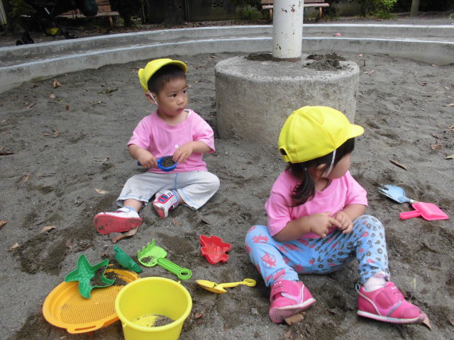 公園では滑り台をしたり、お砂場で遊んだり、Koala Teamのお友達は先生と一緒にベンチに座ったり、葉っぱを集めて感触を楽しんでいましたよ♬
