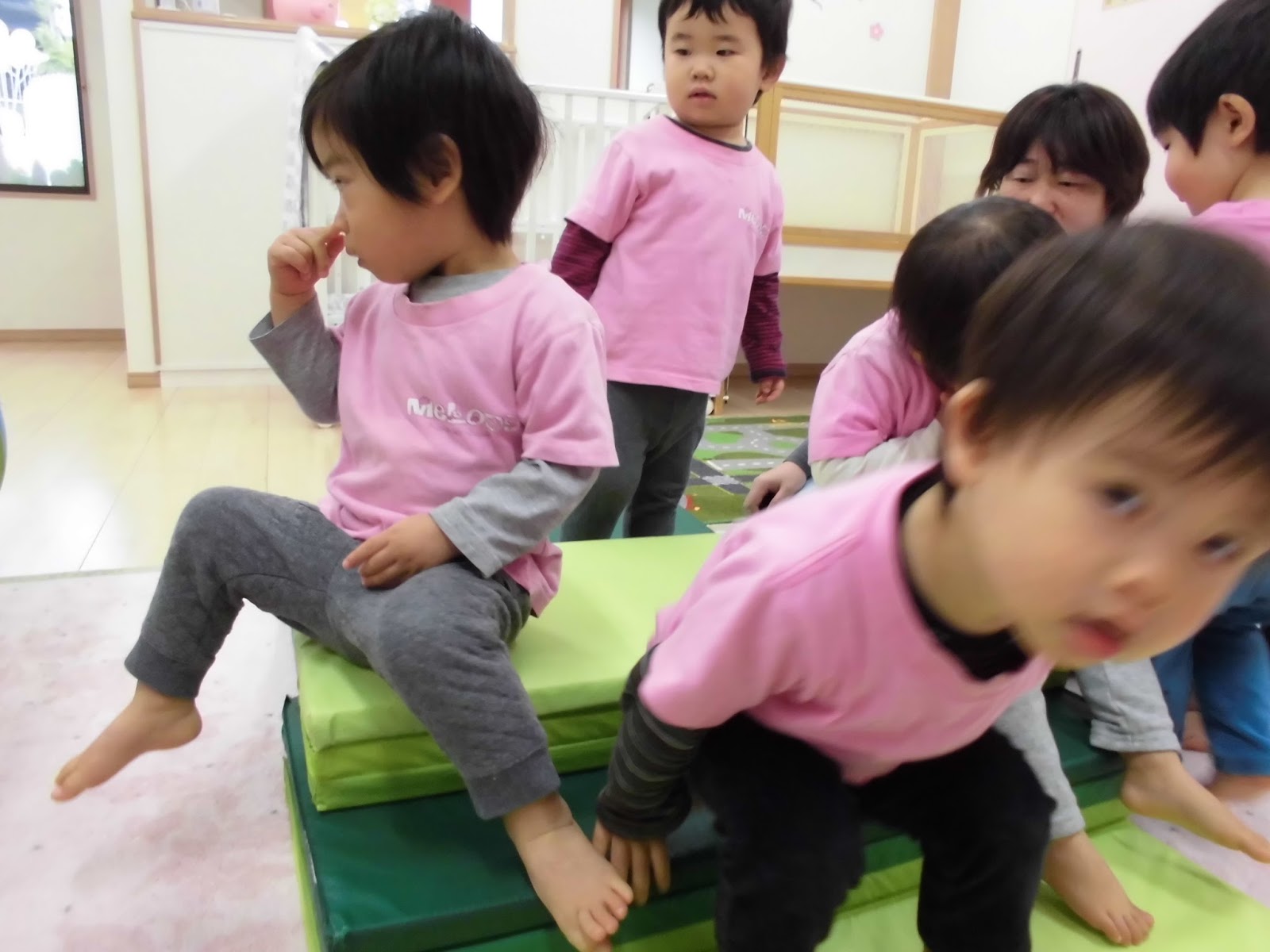 お部屋でマットを出して遊びました(*^-^*)