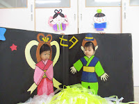 お話の後は、みんなで星をペタペタ貼りました(*^-^*)